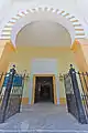 ![]() Main entry of the Cathedral of the Holy Trinity in Gibraltar viewed from Cathedral Square, depicting its Moorish-style horseshoe arches. | |