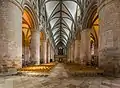 نگارهای از طاق بادبزنی در راهروهای کلیسای جامع گلاستر.