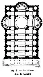 با مرگ پاپ جولیوس در ۱۵۱۳، جولیانو دا سانگالو، جووانی جوکوندو و رافائل جایگزین برامانت شدند. یک سال پس از مرگ برامانته در سال ۱۵۱۴، سانگالو و جوکوندو نیز مردند. تفاوت اصلی در پلان رافائل سالنی است با پنج راهرو که ردیفی از نمازخانههایی به صورت برآمده، در هر طرف، خارج از راهروها قرار دارد.