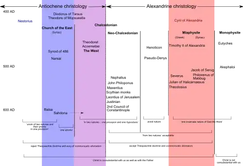 دیدگاه نِستوریوس نقطه اوج جریان فلسفیای است که توسط دانشمندان مدرسه انطاکیه، به ویژه مربی نستوریوس، تئودور از موپسوئست، نشان داده شدهاست. این دیدگاه در زمانی که نستوریوس عنوان تئوتوکوس به معنای «حامل خدا» که برای مریم، مادر عیسی استفاده میشد را به چالش کشید جنجال آفرید. [3] او عنوان کرد که این عنوان، انسانیت کامل مسیح را از بین میبرد در حالیکه این عیسی که نیازمند به بدن شخصی برای به وجود آمدن است نمیتواند خدایی کامل با ذات الهی تنها باشد بلکه عیسی دارای دو ذات همزمان خدایی و انسانی است. به این ترتیب وی عبارت کریستوتوکوس به معنای «حامل مسیح» را به عنوان نام جایگزین برای مریم پیشنهاد داد. این اظهارات انتقاد دیگر مسیحیان برجسته کلیسا، به ویژه سیریل اسکندریه را برانگیخت که منجر به شورای شهر اِفِسوس در ۴۳۱ میلادی گشت، که طی آن نستوریوس به عنوان کافر محکوم و از مقام پاتریارک خلع شد.[4] نستوریانیسم بهطور رسمی مردود اعلام شد و پیروان آن از دین خارج شده اعلام شدند حکمی که در شورای کلسدون در سال ۴۵۱ نیز دوباره تکرار شد. با این حال، تعدادی از کلیساها، به خصوص آنهایی که با مدرسه ادسا در آشور و شمال میانرودان ارتباط داشتند، از نستوریوس حمایت کردند و از کلیساهای امپراتوری روم و بیزانس بریدند. بسیاری از طرفداران نستوریوس به ایران ساسانی انتقال یافتند.[5] این حوادث به عنوان انشقاق نستوری شناخته میشود.