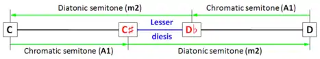 | دیز کوچک | m2 منهای A1 در کوک یکچهارم کمای میانگین S3 منهای S1 in 5-limit tuning |
