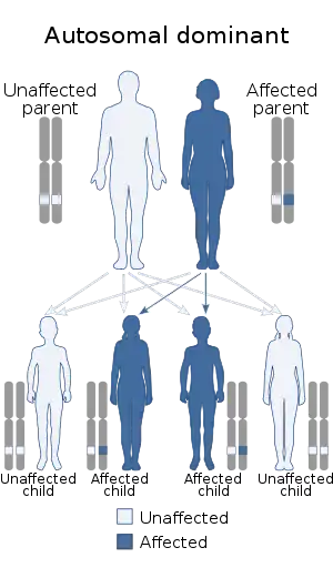 | نحوهٔ توارث این بیماری از نوع اتوزومال غالب است. | |