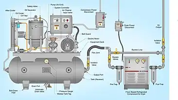 از کمپرسورها برای فشردهکردن گازها استفاده میشود. در حقیقت کمپرسورها با صرف انرژی مکانیکی، سیال را با سرعت به درون خود مکیده، آن را فشرده میکنند. در اثر این عملیات، دمای گازی که فشرده میشود نیز افزایش مییابد. معمولاً گاز پرفشار خروجی از کمپرسورها را از یک سامانه خنککننده عبور میدهند تا دمای گاز کاهش یابد. انواع گوناگونی از کمپرسور وجود دارد که برای مصارف صنعتی و عمومی طراحی شدهاند. کمپرسور هوا گونه ای از کمپرسورها میباشد.