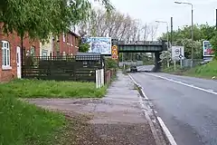![]() Railway bridge and cottages at the south-east end of the village | |