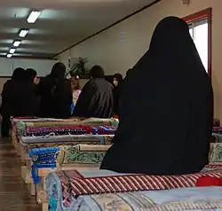 ![]() Families wait at the Welcome Center to schedule a visitation to see their relatives who are being held at the theater internment facility at Camp Bucca. | |