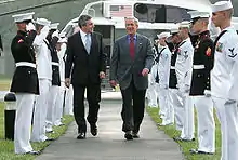 جرج بوش و گوردون براون در حال ورود به کمپ دیوید.