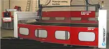 دستگاه برش جت آب (WaterJet Cutting) یک دستگاه برش در مقیاس صنعتی است که قابلیت برشکاری طیف وسیعی از مواد را داراست. در این دستگاه برای برش از یک جت آب پرفشار یا مخلوط آب پرفشار و مواد ساینده استفاده میشود که با استفاده از یک نازل به سطح جسم برخورد کرده و آن را برش میدهد. از مزایای استفاده از واترجت میتوان به درجه حرارت بسیار پایین در هنگام برش (برش سرد) و هزینه نگهداری کمتر نسبت به برشهای لیزر و پلاسما اشاره کرد.[9]