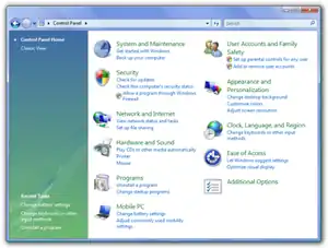 ![]() نماگرفتی از کنترل پنل ویندوز ویستا | |