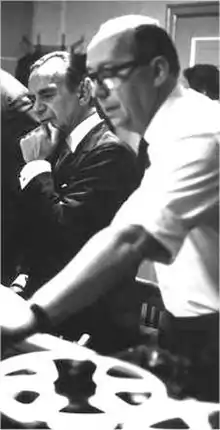 ![]() کنث ویلکینسون (راست) در کنار «سِـر مالکوم سارجنت» در یک جلسهٔ ضبط موسیقی | |