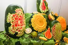 - مشارکتکنندگان ویکیپدیا. «Fruit carving». در دانشنامهٔ ویکیپدیای انگلیسی، بازبینیشده در ۲۱ اوت ۲۰۱۶.