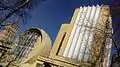 ![]() 1920s photo: Konstantin Melnikov in front of his Kauchuk Club | |