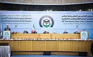 - International Islamic Unity Conference Kicks off in Tehran بایگانیشده در ۲۰ ژوئن ۲۰۱۹ توسط Wayback Machine english.almanar.com.lb Retrieved 1 December 2017