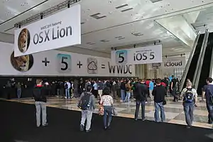 کنفرانس جهانی توسعهدهندگان اپل در سال ۲۰۱۱. این آخرین کنفرانسی بود که توسط استیو جابز قبل از استعفا و مرگش میزبانی شد.