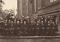 (از چپ به راست) ایروینگ لانگمویر، ماکس پلانک، ماری کوری، هندریک لورنتز، آلبرت اینشتین، پل لانژون، شارل اوژن گویه، چارلز تامسون ریس ویلسون، اون ویلانز ریچاردسون