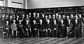 (از چپ به راست) اگوست پیکار، امیل هنریوت، پائول ارنفست، ادوارد هرتزن، تئوفیل د دوندر، اروین شرودینگر، ژول-امیل ورشافلت، ولفگانگ پاولی، ورنر هایزنبرگ، هارتلی اچ فاولر، لئون بریلوین
