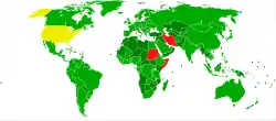 از بین اعضای سازمان ملل تاکنون تنها چهار کشور ایران، سومالی، سودان، تونگا به این کنوانسیون ملحق نشدهاند. دو کشور ایالات متحده آمریکا و پالائو هم کنوانسیون را امضاء کرده ولی هنوز به آن نپیوستهاند. از بین کشورهای غیر عضو سازمان ملل هم سریر مقدس (واتیکان) به کنوانسیون نپیوسته ولی جمهوری چین (تایوان) به آن پیوسته هرچند این کنوانسیون مختص اعضای ملل متحد است و عضویت تایوان غیررسمی است. دولت فلسطین به عنوان ناظر غیر عضو سازمان ملل در تاریخ ۲ آوریل ۲۰۱۴ به این کنوانسیون پیوست. نائورو و قطر به ترتیب در ۲۳ ژوئن ۲۰۱۱ و ۲۹ آوریل ۲۰۰۹ به این کنوانسیون پیوستهاند. سودان جنوبی آخرین مورد پیوستن به این کنوانسیون را در تاریخ ۳۰ آوریل ۲۰۱۵ رقم زد.[5]