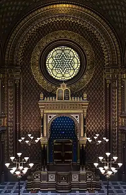 نگارهای از صندوق تورات در کنیسه اسپانیایی در پراگ.