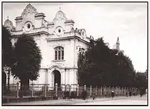 این کنیسه در سال ۱۸۶۸ توسط معمار پل فون هاردنک طراحی و ساختمان آن در سال ۱۸۷۱ تکمیل شد.[1] معماری آن از چندین سبک مختلف تشکیل شده بود، با این حال، سبک نئو-رنسانس در آن غالب بود. این کنیسه در سراسر شهر به دلیل حذانها و گروه سرودخوانیش معروف بود.