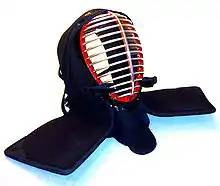 - سر با پوشیدن کلاهخودی به نام «مِن» محافظت میشود که دارای یک شبکه فلزی به نام «مِن-گانه» (面金) برای محافظت از صورت، لایههایی ضخیم از پارچه و چرم به نام «تسوکی-داره» (突垂れ) برای محافظت از گلو، و لایههای ضخیم پارچهای به نام «مِن-داره» (面垂れ) برای محافظت از راست و چپ گردن و شانهها است.