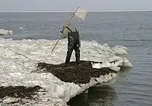 تکههایی از کهربا از کف دریا توسط امواج کنده شده، و با دست، لاروبی یا غواصی جمعآوری میشوند. در جای دیگر، کهربا هم در آثار باز و هم در گالریهای زیرزمینی استخراج میشود. سپس گرههای زمین آبی باید حذف شوند و پوستهٔ مات پاک شود، که میتوان در داخل بشکهٔ گردان حاوی شن و ماسه و آب این کار را انجام داد. سایش، این پوسته را، از کهربای دریایی حذف میکند.[20]