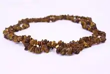 کهربا به صمغ (انگم) فسیل شدهٔ درخت گفته میشود که معمولاً به دلیل رنگ و زیبائی طبیعی آن از دوران نوسنگی دارای ارزش است. معمولاً از این ماده برای ساخت اشیاء تزئینی و جواهر استفاده میشود. از دوران باستان تا به امروز کهربا به عنوان سنگ جواهری بسیار ارزشمند بوده و به شکلهای مختلف درآورده شدهاست.[1] کهربا به عنوان عنصری در عطرها، عامل بهبودی در طب عامیانه، و به عنوان جواهر مورد استفاده قرار میگیرد.