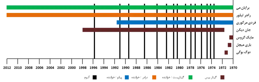 - برایان می - نوازندهٔ گیتار الکتریک - کیبورد - خواننده (۱۹۷۰ - امروز)