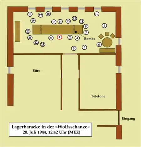 مهمترین عملیات این گروهها، تلاش آنها برای حذف هیتلر در بیست ژوئیه ۱۹۴۴ از طریق انفجار بمب در جلسه مذاکره هیتلر در راستنبرگ بودهاست.[1] راستنبرگ (که اکنون جزئی از لهستان هست) در پروس شرقی قرار داشت. قرارگاه هیتلر در راستنبرگ، وولفز شانزه (آشیانه گرگ) نام داشت[4] و هیتلر از آن جهت هدایت عملیات جبهه شرقی (نبرد با روسیه) استفاده میکرد. سفر هوایی بین برلین و راستنبرگ حدود دو ساعت و نیم زمان میبرد. قرارگاه وولف شانزه دارای پناهگاههای زیر زمینی ضد هوایی بود، اما در روز انفجار بمب، جلسه در ساختمانی ساده بر روی زمین برگزار شده بود. در طی این واقعه، کلنل ون اشتافنبرگ کیفی حاوی بمب را در زیر میز مذاکره قرار داده و به بهانه مکالمه تلفنی از جلسه خارج شد و پس از انفجار بمب با هواپیما به سوی برلین بازگشت.