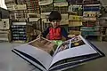 دختر بچه در حال دیدن عکس های یک کتاب مصور