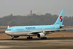 ایرباس ای۳۳۰ متعلق به هواپیمایی کره، در فرودگاه ناگاساکی