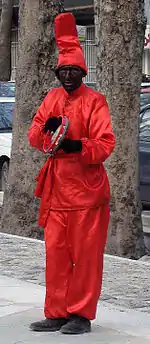 این رسم در روزگار ساسانی و دورهٔ اسلامی، توسط غلامان سیاه اجرا میشده که ملبس به لباسهای رنگارنگ شده و با آرایش ویژه و لهجهٔ شکسته و خاصی که داشتند، دف و دایره میزدند و ترانههای نوروزی میخواندند. حاجی فیروزهای امروزی که مقارن نوروز و سال نو در کوی و برزن مردم را به طرب درمیآورند، از بقایای آن رسم کهن است. با این تفاوت که امروزه چون غلام و سیاهانی نیستند که چنین کنند، دیگران خود را سیاه کرده و به زی آنان آراسته و تقلیدشان میکنند.[3]