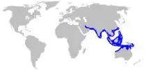 این کوسه در مناطق کمعمق غرب و مرکز اقیانوس هند و اقیانوس آرام زیست دارد و از ماهیهای کوچک استخوانی، سختپوستان و سرپایان تغذیه میکنند.