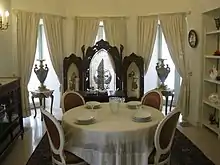 طبقه دوم این بنا نیز از یک هال مرکزی و ایوان گسترده چهار طرفه تشکیل شدهاست. از سالن مرکزی این طبقه به عنوان اتاق موسیقی استفاده میشد که در چهار طرف آن قفسههای چوبی ویترین دار نصب شدهاست. این ایوان از ۲۶ ستون مدور با نمایه گچی و شش ستون با مقطع مربع قطور با نمای آجری تشکیل شدهاست. بعد از انقلاب ۱۳۵۷ ایران، این بنا تحت نگهداری و تعمیر قرار گرفت و بخش پائین دیوارههای آن مرمت شد و در اردیبهشت سال ۱۳۷۹ و همزمان با هفته میراث فرهنگی افتتاح گردید. این بنا پس از یک دوره تعمیرات تأسیساتی دیگر در سال ۱۳۸۴ بطور رسمی بازگشایی شد.[3]