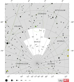 - مشارکتکنندگان ویکیپدیا. «Mensa (constellation)». در دانشنامهٔ ویکیپدیای انگلیسی، بازبینیشده در ۱۸ مه ۲۰۰۸..