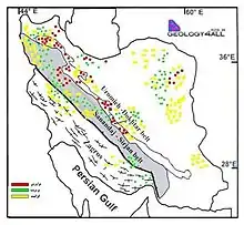 - «زمینشناسی عمومی و واحدهای ساختاری ایران». پایگاه ملی دادههای علوم زمین کشور. بایگانیشده از اصلی در ۳ اوت ۲۰۱۶. دریافتشده در ۸ ژوئن ۲۰۱۶.