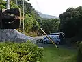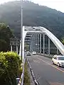 پل ساگامی کو اُوباشی (相模湖大橋). راه ورودی کوه ساگامی آراشی در طرف چپ خیابان انتهایی این پل و مخالف جهت بهمنگیر قرار دارد.