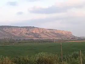 ![]() Mount Carmel at sunset, as seen from the entrance of کیبوتص Ma'agan Michael | |