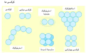 - دیپلوکوکسیها یا کوکسی دوتایی که بهصورت دستههای دوتایی زندگی میکنند مانند استرپتوکوک پنومونیه و نایسریا گونوره.