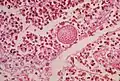 | Histopathological changes in a case of coccidioidomycosis of the lung showing a large fibrocaseous nodule. | |