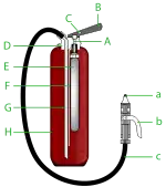 برای استفاده از کپسول آتشنشانی باید ضامن کپسول را کشیده و اهرم آن را فشار داد. این اهرم یک میله را فشار میدهد تا شیر فنری را به پایین فشار دهد و مسیر خروجی را باز کند. گاز فشرده شده بر اثر فشار رها میشود و با نیروی قابل ملاحظهای از مخزن به دهانه خروجی منتقل شده، خارج میشود.