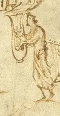 There is evidence of citharae shaped like a lute, that is with a neck and an elongated body, even before the 12th century: the Golden Psalter of St Gall depicts King David wielding an instrument...this instrument resembles a lute more than a cythara [lyre]...Further evidence appears in the Stuttgart Psalter...several images of an instrument...in the text, next to all these miniatures, the instrument is called a cythara...