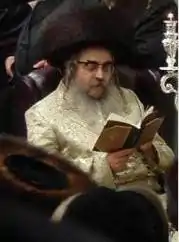 خاخام اعظم ارن تایتلبام در حال جشن حنوکا در کیریاس جول