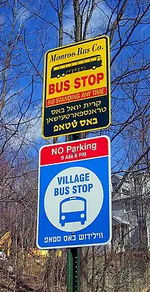 ایستگاه اتوبوسی در کیریاس جول با زبانهای انگلیسی و ییدی