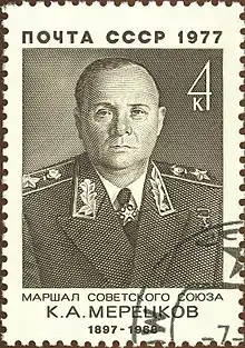 ![]() Kiril Meretskov depicted on a postage stamp of the Soviet Union | |