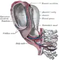 کیسه ناف ثانویه - این ساختار هنگامی تشکیل میشود که قسمتی از لایه میانی مزودرم جدا شده و استخوانها، غضروفها، دستگاه گردش خون، لایهٔ داخلی پوست، عضلات، دستگاه تناسلی، دستگاه ترشحی و لایه پوشانندهٔ خارجی را میسازد. آنچه که باقی مانده کیسه ناف ثانویه است.