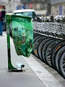 یک کیسه پلاستیکی برای جمعآوری زباله در خیابانی در پاریس