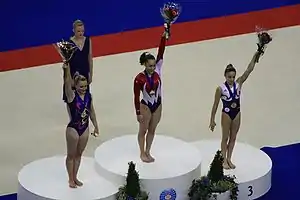 ![]() Kayla Williams (center) on the podium at the مسابقات جهانی ژیمناستیک هنری ۲۰۰۹ | |||||||||||||||||||