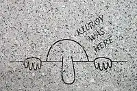 - مشارکتکنندگان ویکیپدیا. «Kilroy was here». در دانشنامهٔ ویکیپدیای انگلیسی، بازبینیشده در ۱۳ فوریه ۲۰۱۴.