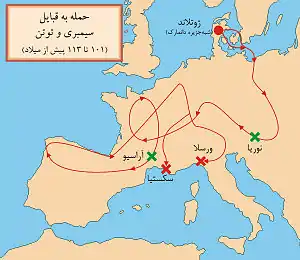 Wikipedia contributors، «Cimbri،» Wikipedia، The Free Encyclopedia، http://en.wikipedia.org/w/index.php?title=Cimbri&oldid=285470024 (accessed April ۲۲، ۲۰۰۹).