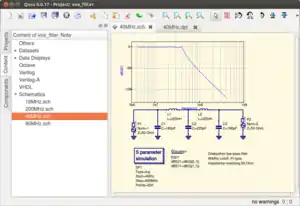 Qucs از یک مجموعه در حال رشد قطعات آنالوگ و دیجیتال از جمله زیر-مدارات اسپایس (SPICE) پشتیبانی میکند.
