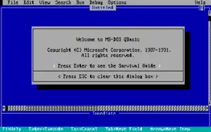 نخستین نسخهٔ QBasic در سال ۱۹۹۱ معرفی گردید و از آن پس بر روی سیستم عاملهای DOS نسخهٔ ۵ و بالاتر به صورت پیشفرض عرضه شد.
